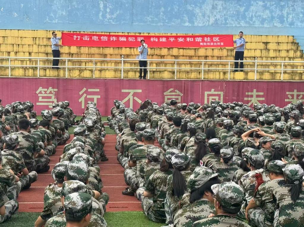 为切实提升2025级新生的反诈防骗意识,从源头构建校园安全屏障,构建平安和谐校园。9月10日、11日,保卫工作部特邀恩施市舞阳派出所走进校园为2025级新生开展反诈宣传教育活动。舞阳派出所“反诈宣传讲师团”10名民警深入军训场地,为刚迈入大学校园的新生们送上实用的防骗指南。
