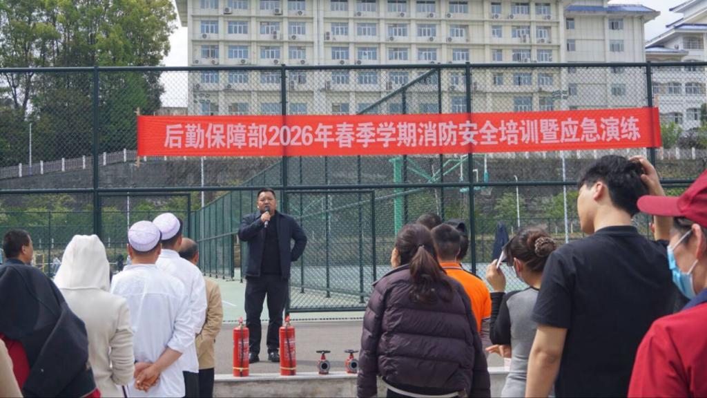 4月1日,湖北民族大学保卫工作部(处)消防科联合后勤保障部,在三洼空地组织开展2026年春季学期消防安全培训暨应急演练,以实战化练兵筑牢校园消防安全防线,全面提升后勤保障人员消防实操技能与应急处置能力。