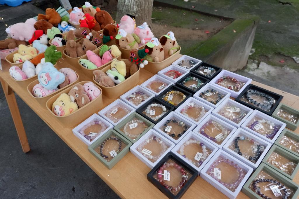 手作创意体验区同样人气高涨。这里不仅有可供DIY涂鸦的石膏娃娃、琳琅满目的彩珠供师生串制心仪的手链项链,还有柔软可爱的玩偶,以及以校园小猫为原型设计的“吧唧”和吊坠等文创产品。更惊喜的是,“小猫学长”也亲临现场,萌趣互动将氛围推向高潮。
