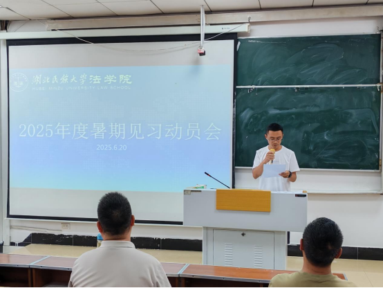 本网讯(记者 袁本怡 曾钰格/文 李佳萱/图)6月20日,我院于德智楼9B301举行23级见习学生2025年暑期实习动员会,我院党总支书记张明波,副院长李文革、蔡世鄂及雷国平、柳海松等带队老师出席动员会,动员会由法学系副主任舒登维主持。
