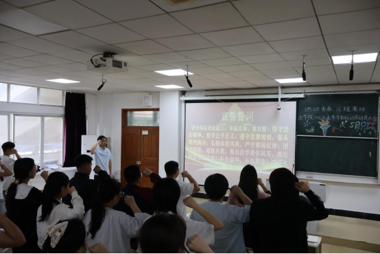 会议伊始,全体人员共同观看视频,回望2025年运动会精彩瞬间,并由文体部雷小雨宣读本次运动会参赛名单。随后,运动员代表王海霞发言。她结合三年参赛经历与亲身感悟,分享赛场成长心得,勉励学弟学妹们在运动会中磨砺意志、团结协作、奋勇争先,以青春之姿续写学院奋进篇章。发言完毕,刘胜勇带领全体运动员赛前宣誓,铿锵誓言尽显青年学子昂扬风貌。