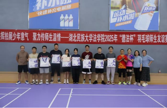 本网讯(记者 杨冬兰 唐裔博 摄影 曹萍艳 李淑女)2025年9月25日,湖北民族大学法学院“德法杯”羽毛球师生友谊赛顺利举行。本次活动由法学院分工会与学生会文体部联合组织,面向全院师生,旨在以羽毛球为纽带,增进互动,营造轻松愉悦的交流氛围,进一步凝聚师生情感。