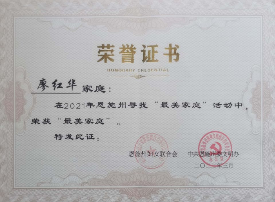 我校廖红华家庭被评为2021年度恩施州“最美家庭”