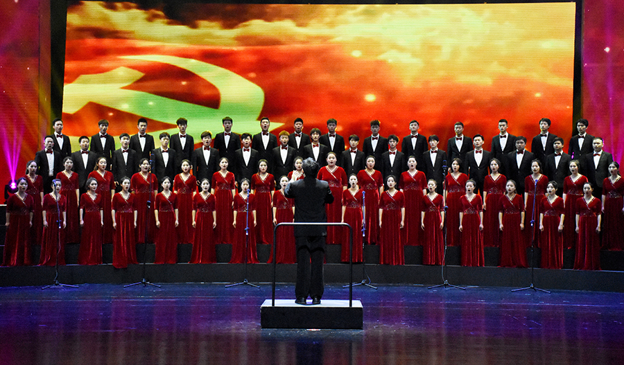 学校合唱团演唱的曲目是《黄河大合唱》中的第八乐章《怒吼吧,黄河》。这首作品以黄河为背景,热情歌颂了中华民族悠久的历史,控诉侵略者的残暴,并展现了中国人民与日本侵略者奋勇斗争的英勇场面,勾画出了中国人民保卫祖国、顽强抗击侵略者的壮丽画卷。在学校领导的大力支持下,校合唱团的老师和同学们积极备战、刻苦训练、坚持不懈。合唱团的队员们深刻领悟作品精神,将这首大气磅礴、汹涌澎湃的歌曲演绎得淋漓尽致,在全州舞台上展现出民大人优秀的精神风貌和艺术水平,得到了评委和观众热烈的掌声和一致好评,被评为一等奖。