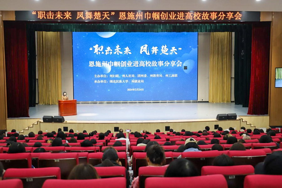 3月24日,由学校和州妇联、团州委、州人社局、州教育局、州工商联等单位联合开展的“职击未来 凤舞楚天”恩施州巾帼创业进高校故事分享会在新区多功能报告厅举行。
