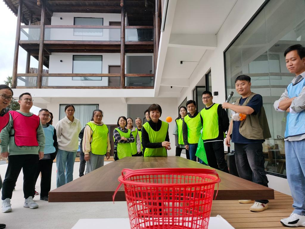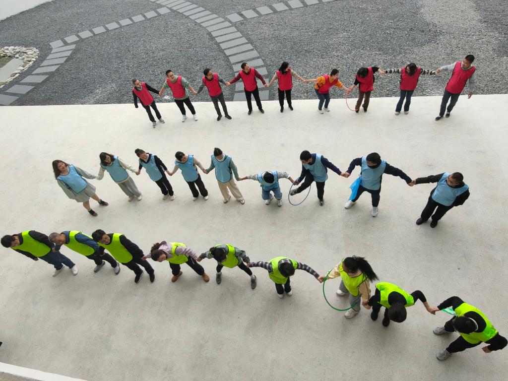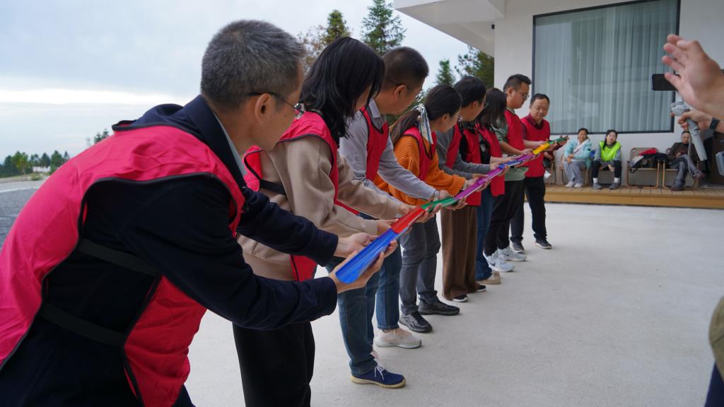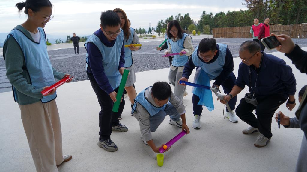 达到营地后,在活动主持人的统一指挥下,通过“击鼓传花”和“组建团队”开启“破冰行动”之旅,三支队伍很快确定了各自的队名、队旗和口号,“可以队”“什么都队”和“我帅我都队”在一系列趣味性和竞争性项目中展开角逐。