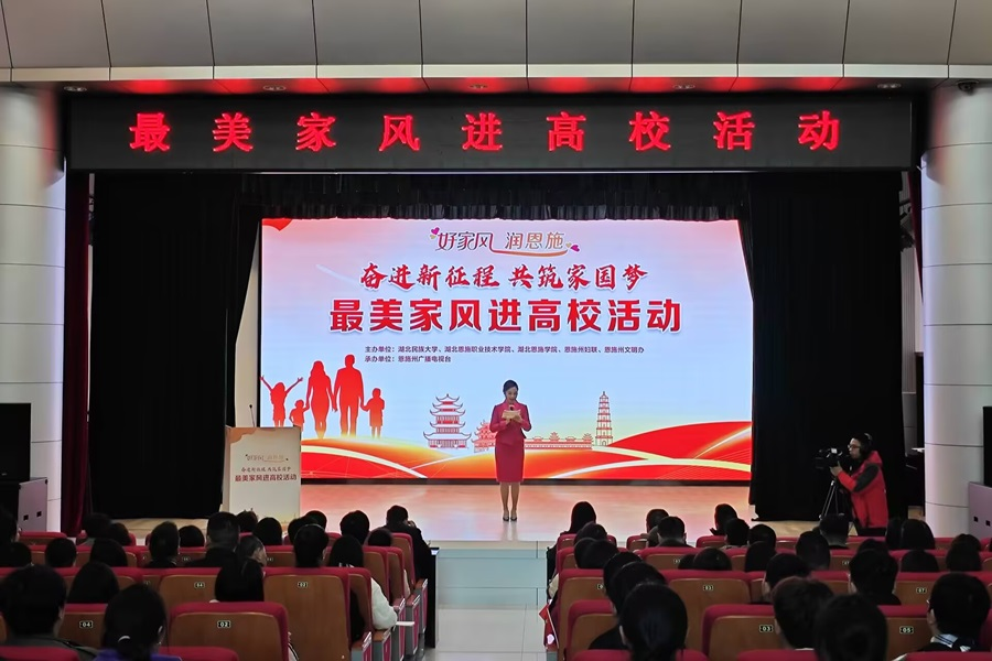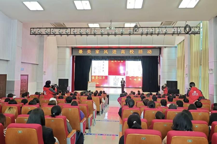 为全面学习贯彻落实习近平总书记关于注重家庭家教家风建设重要论述,弘扬优秀家风文化,11月27日,学校联合恩施州妇联、恩施州文明办在行政楼一号会议室举办以“好家风 润恩施 奋进新征程,共筑家圆梦”为主题的最美家风进校园活动。恩施州妇联党组书记、主席刘俐萍,湖北民族大学党委常委、统战部长田景福,学校纪委副书记曾祥华、工会常务副主席谭德宇、分工会主席及工会委员、教师教育学院200多名学生共同参加本次活动。