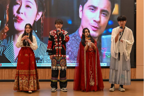 活动最后,我院学生HADIA WALEED、SHIRIN FATIMA与医学部学生胡博轩、吴哲昊一同为在场观众奉上合唱《You Have Stolen My Heart》,略显青涩的歌声却表达了同学们对于中巴友谊的共同心声,也赢得了台下观众的阵阵掌声。