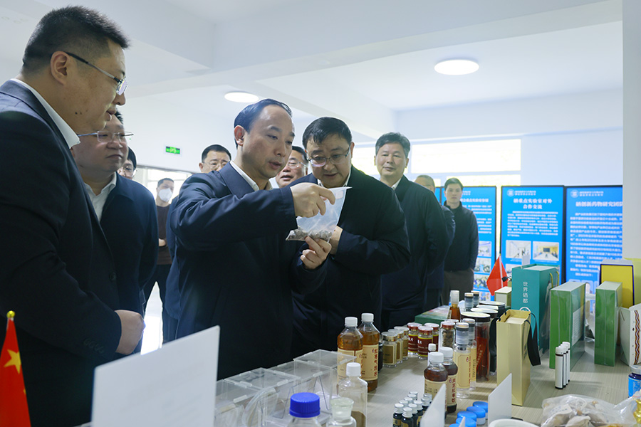 余德芳主持召开调研座谈会。他指出,近年来,恩施州聚焦打造全国硒产业高地目标,扎实推进富硒产业全产业链建设,硒科研有序推进,硒标准不断完善,硒产品不断丰富,硒品牌持续擦亮,成长为全州首个千亿级产业集群。但对照高质量发展要求,富硒产业仍然存在创新能力不足、成果转化不畅、精深加工不够等短板,在构建现代化产业体系上还有一定差距。恩施州硒产业规模虽居全国首位,但仍存在不足,必须牢牢把握“绿色”和“富硒”两大核心优势,坚定打造全国硒高地的信心和决心。余德芳强调,要统筹整合资源力量,系统评估现有硒科创平台,通过优化整合、动态调整,集中力量打造高能级硒科创平台矩阵,全力争创全国硒重点实验室。要建立健全体制机制,大力开展有组织的硒科研,聚焦硒资源高效利用、功能食品和保健药品产品研发、健康效应研究等重点领域集中攻关,凝练科研主攻方向。要坚持企业主体地位,加速科研成果从“实验室”走向“生产线”的高质量转化,切实提升产业核心竞争力。