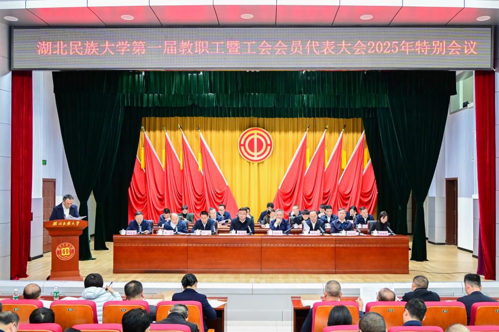 10月23日,湖北民族大学第一届教职工暨工会会员代表大会2025年特别会议召开。