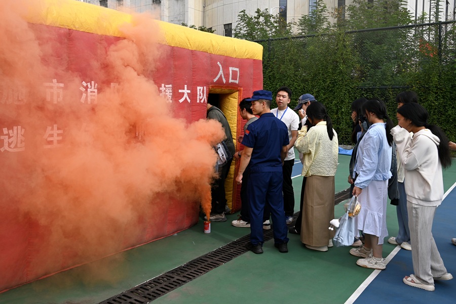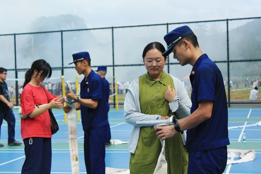 “这次培训让我真正从‘知道’变成了‘会做’。”文学与传媒学院新生恩珠分享道,“初高中时学的消防知识多是理论,面对灭火器总有些胆怯;现在亲手按下压把,看着火焰被扑灭,心里特别踏实。尤其是模拟帐篷逃生,浓烟里根本看不清路,只能靠动作和判断前进,那一刻才明白‘冷静’不是口号,而是能救命的技能。”