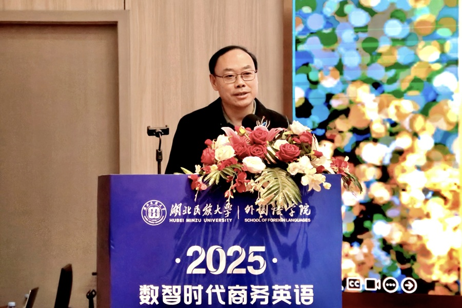 11月7日至9日,2025年数智时代商务英语高质量发展论坛暨湖北省商务英语理事院校年会在学校成功召开。本次会议由中国对外贸易经济合作企业协会国际商务与语言服务工作委员会、湖北省国际商务与语言服务专家指导委员会主办,湖北民族大学外国语学院承办。学校党委常委、统战部部长田景福出席会议并致辞。全省数十所高校的外国语学院院长、商务英语专业负责人及企业代表120余人齐聚一堂,以“数智时代商务英语高质量发展”为核心,共商专业建设、人才培养与学科转型大计。