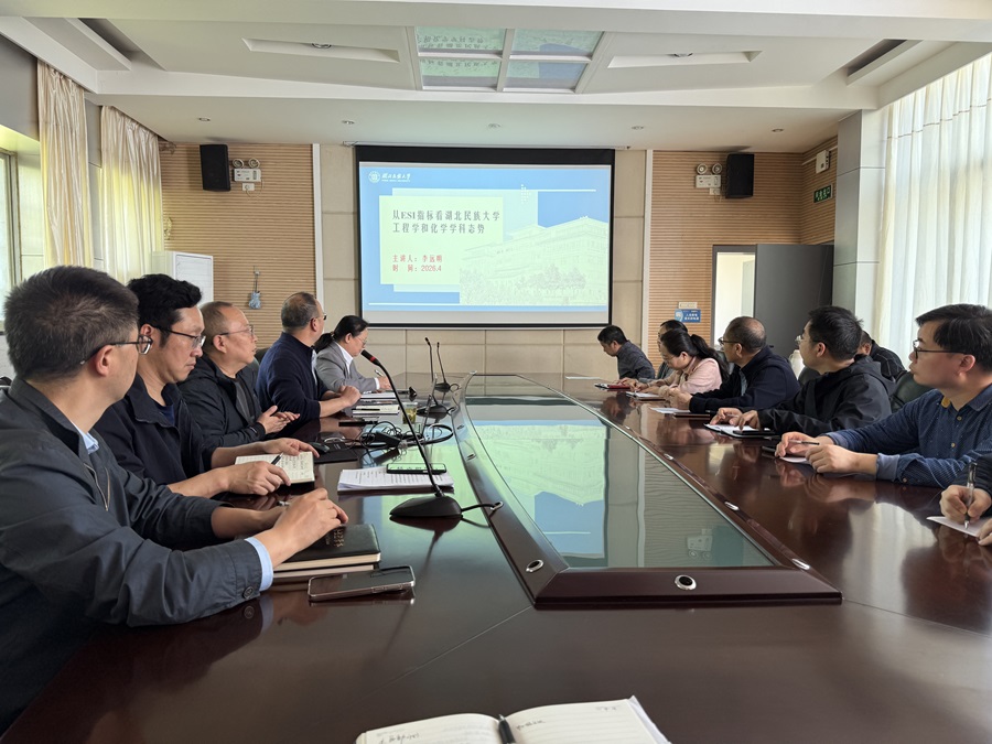 为精准把握学院学科发展态势,明晰工程学、化学学科建设路径,进一步提升学科建设质量与核心竞争力,助力学校“十五五”开好局、起好步,4月16日,化学与环境工程学院成功举办主题为“从ESI指标看湖北民族大学工程学和化学学科态势”的专题讲座。