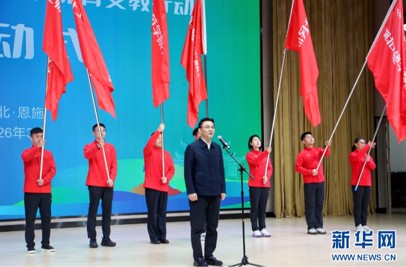 3月31日,2026年湖北省“千师百校”体育支教行动,在位于湖北恩施的湖北民族大学启幕。国家体育总局青少年体育司司长李辉、湖北省体育局局长水兵,湖北省“千师百校”体育支教行动参与高校工作的负责人和志愿者代表参加启动仪式。