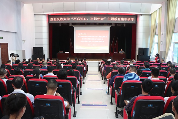 谭德宇作《用习近平新时代中国特色社会主义思想武装起来,始终牢记并落实立德树人根本任务,奋力谱写湖北民族大学学科建设新篇章》辅导报告。他从三个方面进行阐述:一是在学懂、弄通、做实上下功夫,突出抓好领导干部这个“关键少数”,强化习近平新时代中国特色社会主义思想武装;二是树立立德与树人、育人与育才、思政课程与课程思政、分类指导与精准培养相统一的理念,全面落实立德树人根本任务;三是科学理解学科建设的涵义、目标,准确把握学科团队的使命、组建方法,不断增强学校学科建设的软实力。