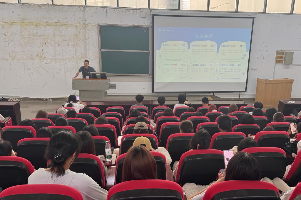 本网讯(记者 杜秋畅/文 通讯员 袁玉婷 舒紫红 李晨茜/图)2025年9月20日,经济与管理学院在修远楼5B403、5B404报告厅开展新生入学教育活动。院团委书记杨睿担任主持人。