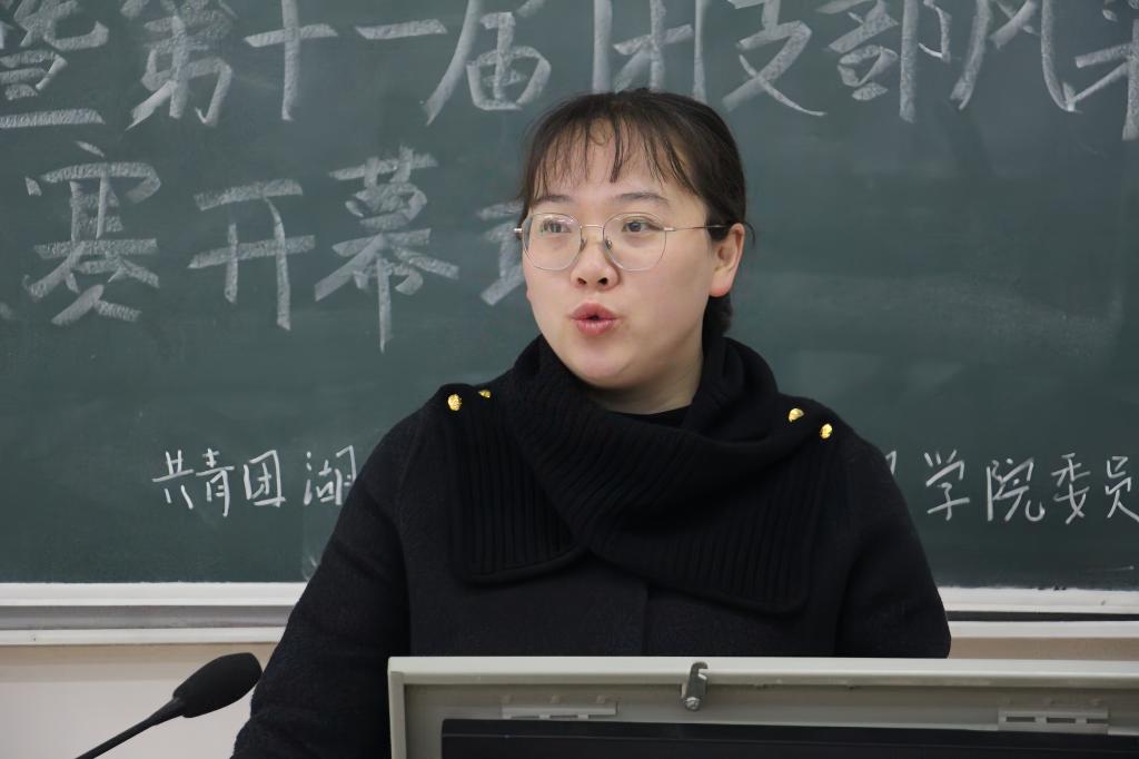 解丽娟致辞。她指出,团体艺术赛与团支部风采大赛是学生淬炼能力、凝聚集体的重要平台。她希望学生在比赛中挑战自我、并肩前行,并预祝本次大赛取得圆满成功。