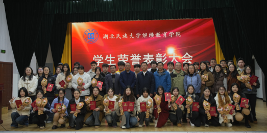 12月9日上午,学院在行政楼一号会议室隆重举行了湖北民族大学继续教育学院学生荣誉表彰大会。湖北民族大学继续教育学院院长来国红、副院长阳辉、张建华,以及湖北财经专修学院石嘉志书记等领导老师出席大会,300余名学生代表齐聚一堂,共同参加荣誉表彰大会。