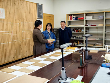 在湖北民族大学图书馆馆长罗洪斌教授等人的陪同下,刘明新馆长一行首先实地参观了我馆民族文献部、古籍修复室与采编部。在参观过程中,两位专家就民族文献的整理开发、古籍保护修复以及采编业务流程等,与相关部门馆员进行了现场交流与细致指导。