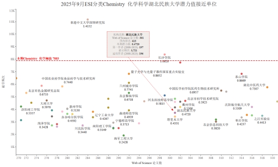 表6Chemistry化学学科湖北民族大学潜力值接近单位情况