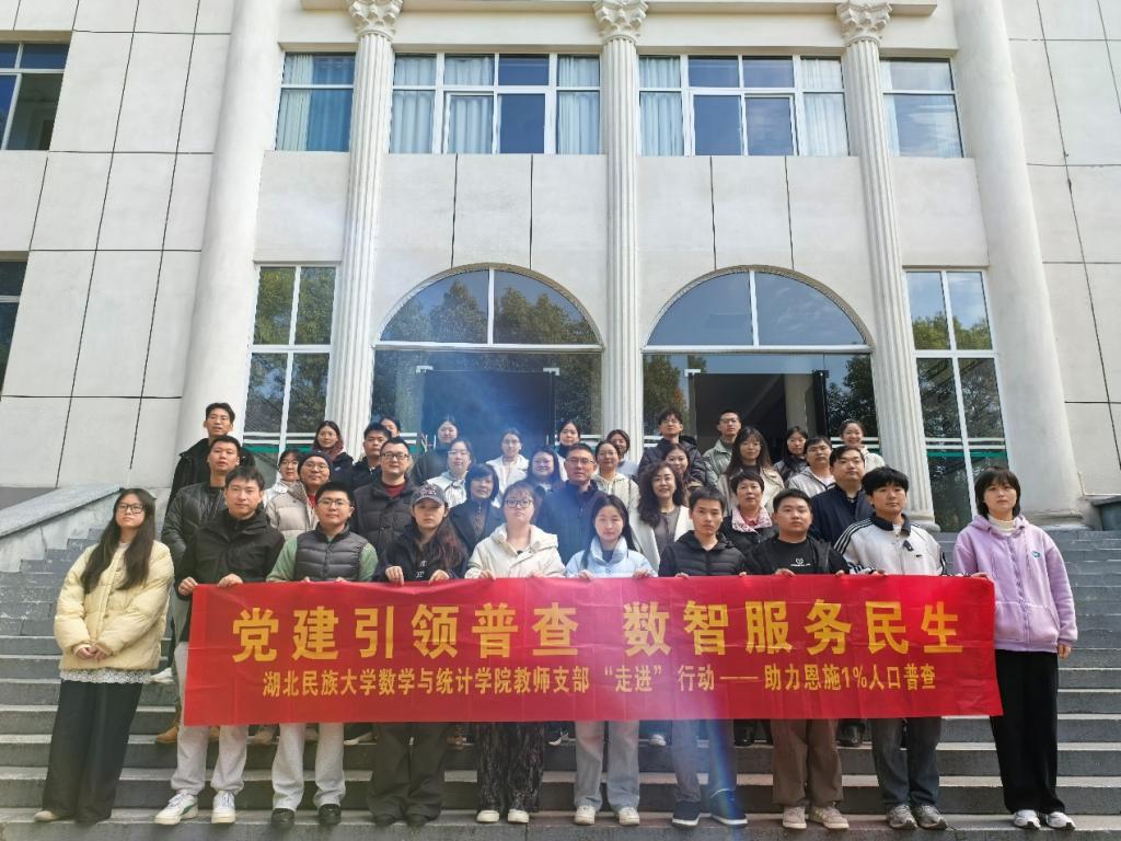 为深化党建与社会实践、人才培养的深度融合,充分发挥数学与统计学科专业优势,切实履行高校服务地方民生的责任使命,11月11日至11月13日,湖北民族大学数学与统计学院教师支部联合本科生、研究生党支部,组建“党员教师+学生志愿者”专项服务队,启动“走进”系列实践行动,分赴恩施市官坡、五峰山、松树坪等社区,全方位助力恩施市1%人口普查工作,通过挨家挨户上门调查、逐户细致填写问卷的方式,专业、细致、高效的工作,用师生协同的“数智力量”为恩施民生数据统计筑牢根基。