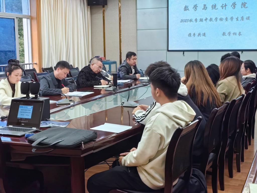 为精准掌握教学动态,优化教学质量,11月6日下午,数学与统计学院在四楼会议室召开2025年秋季学期期中教学座谈会。副院长方壮、数学与应用数学系主任向中义、统计系副主任王宁奎、数学与应用数学系副主任赵远安、教学科负责人姚雪迓出席本次座谈会,各年级学生代表到场参加。
