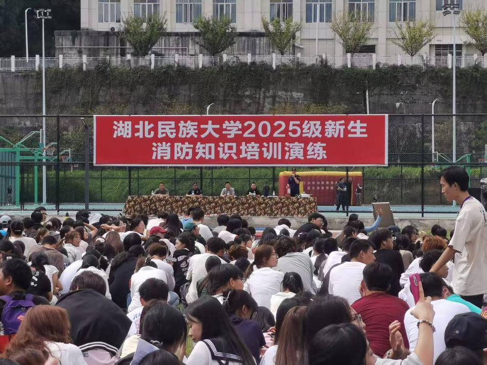 为全面提升新生消防安全意识和应急避险能力,9月27日上午,学校在东苑食堂广场组织2025级新生开展消防知识培训与实战演练。学院2025级新生辅导员刘聪及全体新生共同参与。
