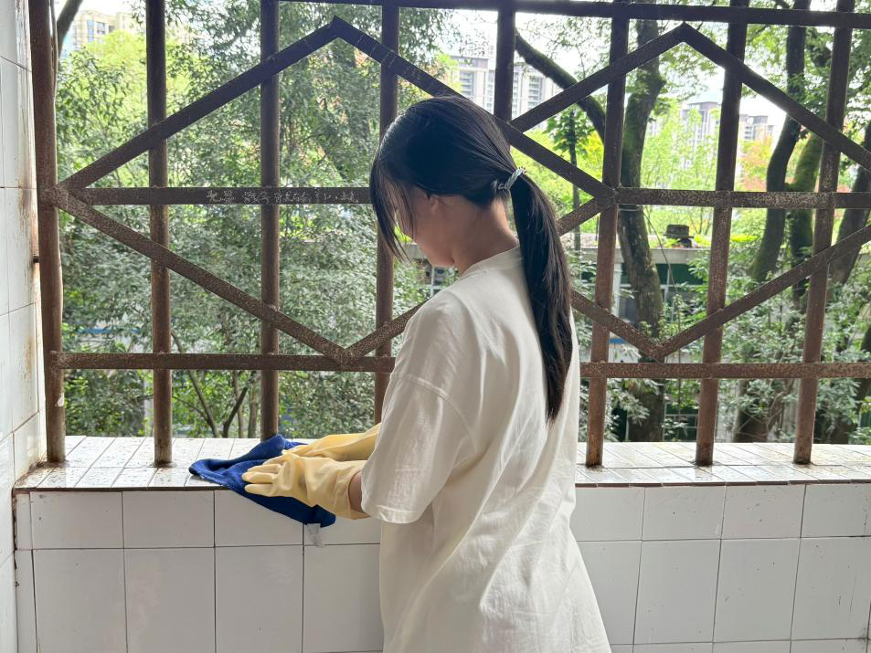 活动中,同学们分工明确、干劲十足。大家从教室内部的桌面、黑板,到走廊的宣传栏、墙角等公共区域进行了全面清扫,用实际行动为学院环境"焕新颜"。