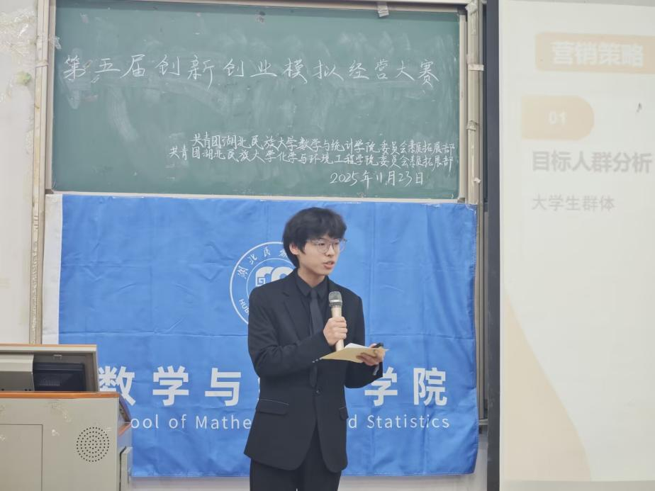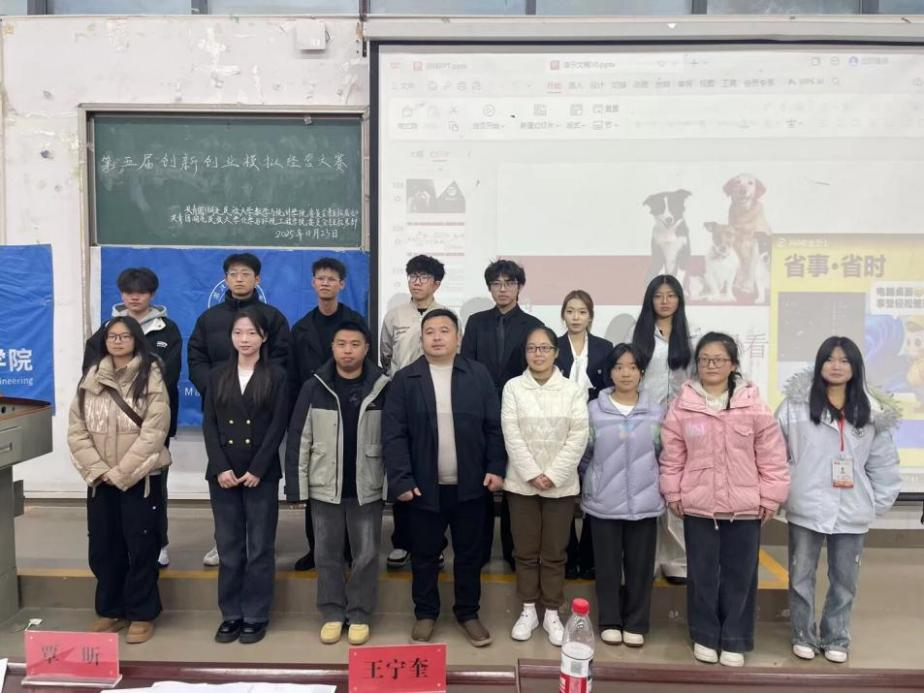 创新改变生活,创业成就你我。为深入贯彻国家关于培养大学生就业的相关政策,激发大学生创新创业热情,加强培育、发展创新创业型人才。11月23日下午,数学与统计学院联合化学与环境工程学院在修远楼5B508举办创新创业模拟经营大赛决赛。我院团委书记王宁奎老师及化学与环境工程学院辅导员邹宇老师、覃昕老师出席担任本次比赛评委。