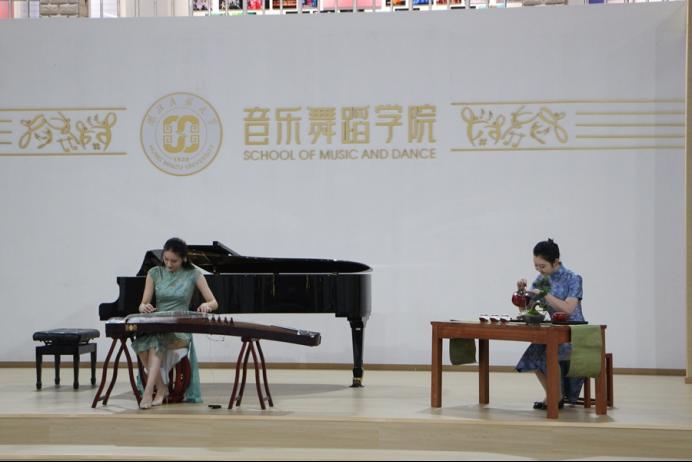 音乐会现场,舞蹈、弹唱、四重奏、茶艺表演、大合唱等文艺节目依次上演,现场掌声持续不断。从《半山听雨》的悠扬箫声,到《大江东去》的激昂旋律;从古筝伴奏下的茶艺展示,到《把一切献给党》的豪迈高歌,音乐舞蹈学院师生与政协委员联袂登台,共同呈现一场兼具民族特色与红色底蕴、融合艺术质感与精神力量的视听盛宴。演出带领观众回顾历史、展望未来,既传递出政协与党同心同德、共创伟业的坚定信念,也展现了祖国大好河山与新时代繁荣景象,进一步激发观众团结一心、共赴新征程的豪情壮志。音乐会尾声,湖北民族大学合唱团登场,以一曲气势恢宏的大合唱《歌唱祖国》点燃全场氛围。台下观众纷纷举起手中红旗,伴随激昂旋律起身站立,用深情歌声与合唱团隔空呼应,真挚的爱国情怀在现场久久回荡。