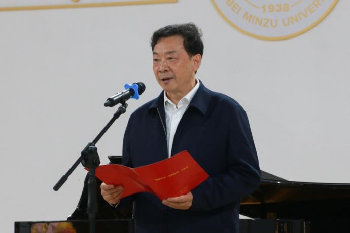 州政协党组书记、主席吴建清讲话。他表示,这不仅是一场兼具艺术性与观赏性的高水准艺术盛宴,更是一次以艺术为桥梁的文化传承实践,既传承弘扬了中华优秀传统文化与红色经典文化,也成为凝聚各界共识、增强凝聚力与向心力的生动载体。他高度肯定了湖北民族大学音乐舞蹈学院的办学成果,学院始终牢记初心使命,坚持立德树人根本任务,已发展成为基础扎实、学风优良、充满活力且特色鲜明的音乐舞蹈专业人才培养基地。