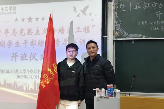 开班仪式在全体师生齐唱团歌中拉开帷幕,杨婷带领全体成员重温入团誓词,欧玲宣读培训班成立通知及学员名单;向驰为第六期“青年马克思主义者培养工程”培训班和第十五期学生干部综合素质培训班授旗,标志着本次培训正式启动。