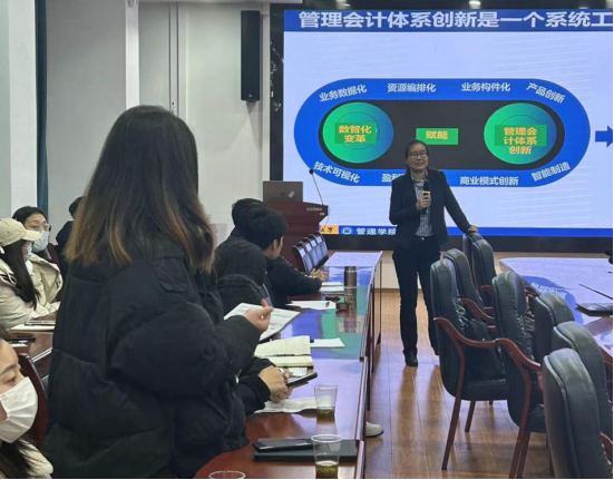 洪荭教授围绕与企业同行,共话中国式现代化中的会计使命——兼论MPAcc学生案例大赛”为主题,展开了讲座。