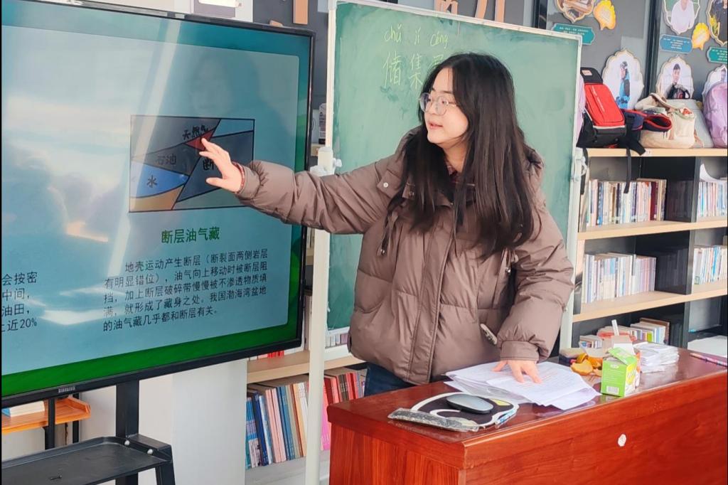 针对低年级学生,志愿者以“地球妈妈的宝藏”为题,用充满童趣的语言讲解石油、天然气的形成、开采及在日常生活中的应用,结合汽车加油、家中做饭等常见场景,化抽象为具体,帮助孩子们建立初步认知。