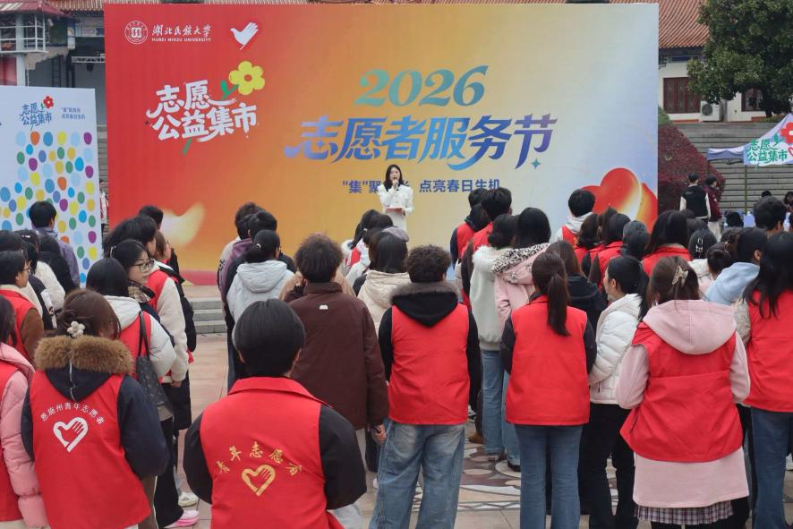 春日正好,暖意融融。3月21日,由湖北民族大学校团委主办的2026年志愿服务节公益集市在大学生广场温暖开市。校团委书记吴珊,校团委副书记刘亚琼、彭弥,校团委办公室主任雷鹏,校团委社会实践与志愿服务部部长张典出席活动。各学院(部)团委书记及师生代表共同参与,共赴这场充满温情与活力的公益之约。