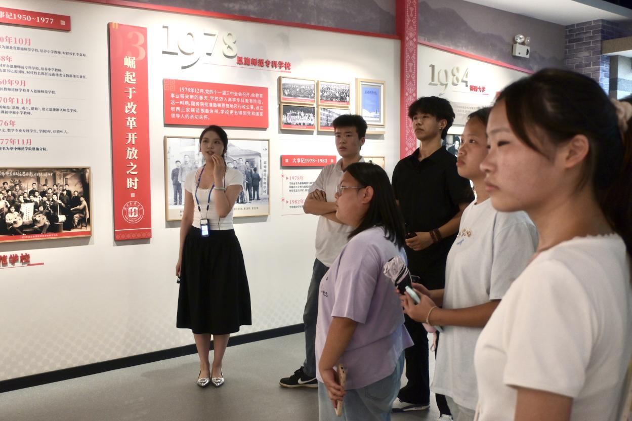 湖北民族大学2025级入学新生在展览中心开展入学教育,帮助学生了解并传承学校优秀传统和精神内核。