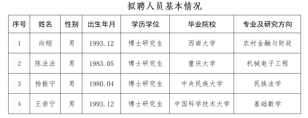 根据《湖北民族大学2025年人才引进公告》有关要求,经面试和考核,现将湖北民族大学2025年度人才引进拟聘人员名单予以公示。公示期从2025年12月5日至12月11日。