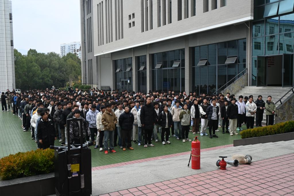 为进一步强化师生消防安全意识,提升应对火灾突发事件的应急处置和自救互救能力,筑牢校园消防安全防线,2025年12月18日14:30,智能科学与工程学院在达人1栋宿舍及修院楼A区前方空地开展消防演练活动。本次演练由学院统筹,联合保卫工作部、后勤保障部等部门共同推进,全体相关工作人员及学生参与演练。