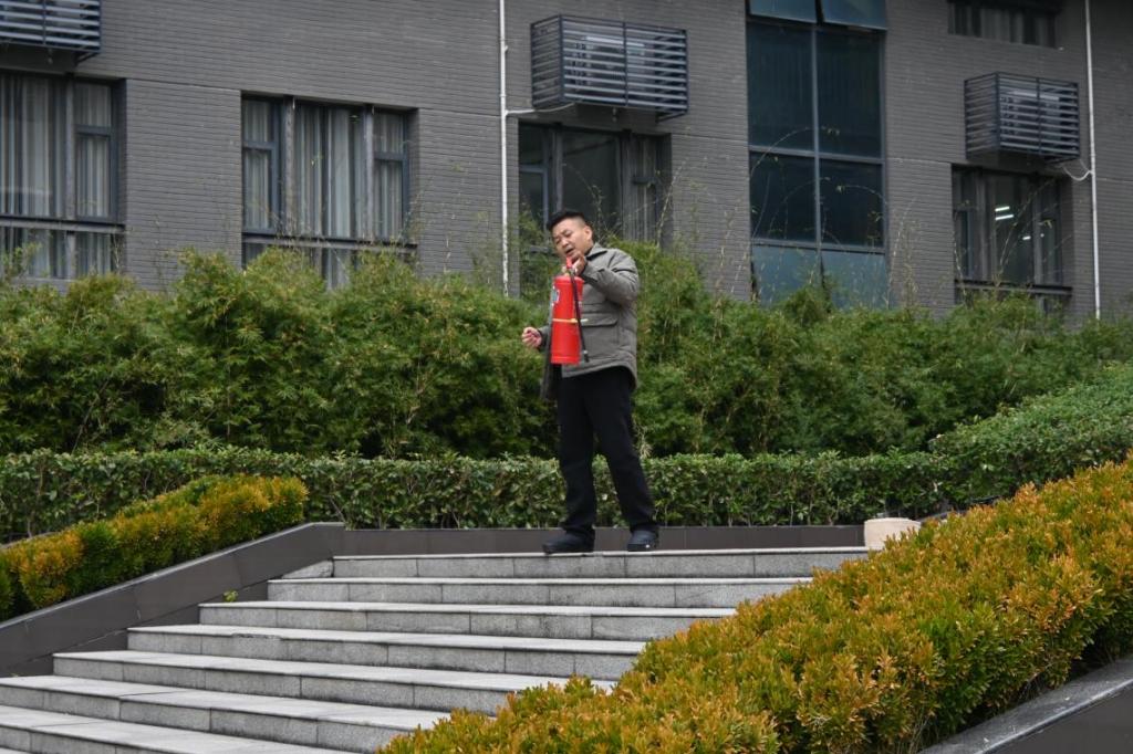 疏散完成后,进入技能演示环节。保卫工作部消防安全管理专员结合实际案例,现场演示灭火器“提、拔、握、压”的标准使用方法,重点讲解火灾初期扑救的核心要点,包括灭火器需对准火焰根部喷射、避免逆风操作等关键技巧。同时,专员还详细普及了面对火灾时的正确自救方法,如如何选择安全疏散路线、被困时如何发出求救信号等实用知识,让师生们直观掌握消防安全技能。