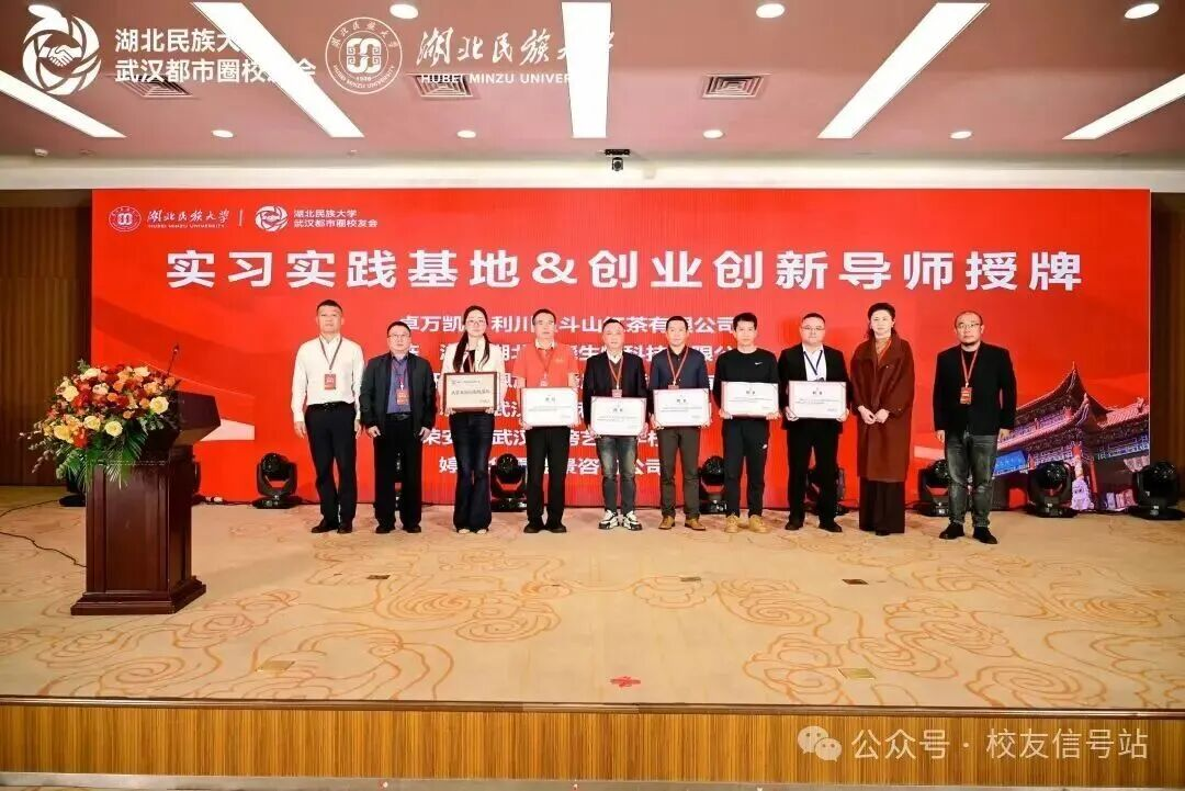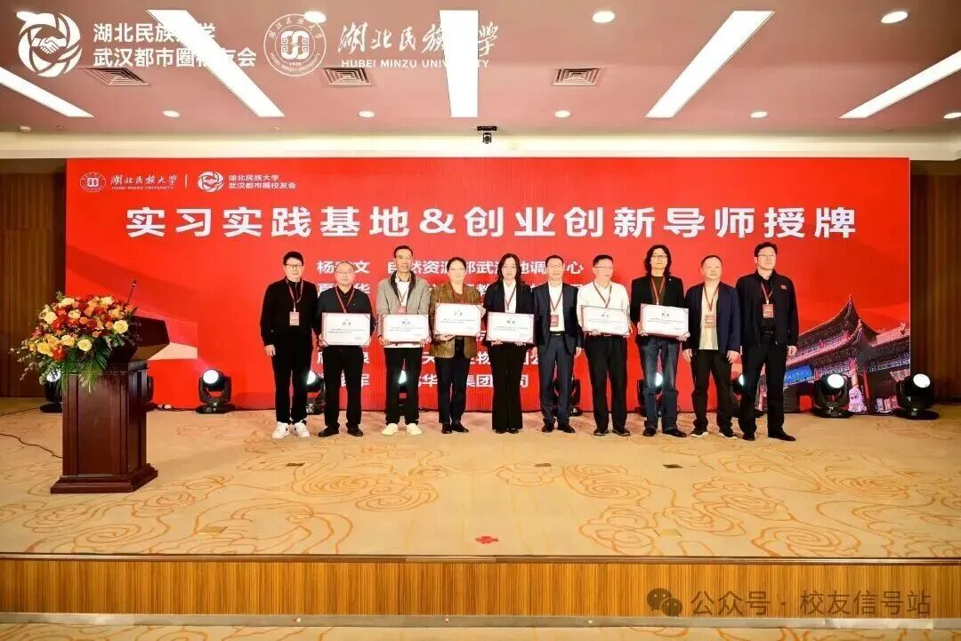 湖北民族大学林学园艺学院院长艾训儒、文学与传媒学院党委书记张刚、智能科学与工程学院党委书记孙先波、化学与环境工程学院党总支书记桑秋章,为自然资源部武汉地调中心杨安文、武汉公选王教育科技有限公司夏晓华、今古传奇杂志社杨如风、戏剧之家杂志社李琛、武汉天惠生物集团唐宏泉、湖北华莘集团公司谭绍军等授牌。