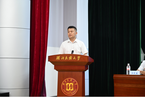 院长何斌首先致辞,他对新同学的到来表示热烈欢迎和诚挚祝贺,并以三句话与同学们共勉:第一,体育学院有底蕴、有实力、有温度,是同学们成长成才的坚实平台;第二,榜样并不遥远,奋斗就是最好的传承,勉励同学们脚踏实地、勇于拼搏;第三,要热爱民大、维护民大,希望同学们在这里安全成长、快乐成才、成就更好的自己。何院长还向全体新生提出三愿:愿大家“起好步”,做沉稳智慧的奔跑者——不盲目抢跑,而是俯身蓄力、强势出发;愿大家“拐好弯”,做勇敢坚定的奔跑者——把握人生节奏,实现弯道超越;愿大家“冲好刺”,做心系家国的奔跑者——不仅要赢在起点,更要坚持到底、赢得最终胜利。