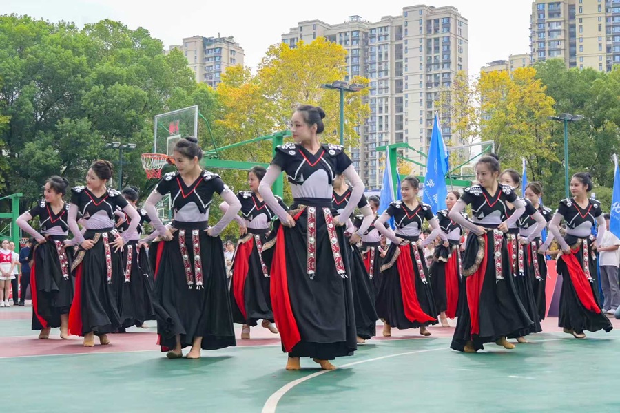 表演环节中,龙狮表演《中华精神》率先登场,金鳞龙身随鼓点腾跃,雄狮昂首摆尾、动作刚劲,赢得现场观众的首次热烈喝彩。跆拳道《烈火战马》表演者身着统一服装,踢腿、出拳动作规范利落,充分彰显出青年群体的昂扬风貌与热血朝气。民族舞《黔·行》以细腻的表演打动人心,让观众在轻柔舞姿中感受到西南地域文化的独特魅力。啦啦操《青春绽放》队员们动作整齐划一,彩色花球随动感音乐节拍有序翻飞,将现场气氛推向高潮。