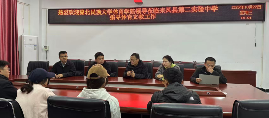 2025年10月22日,湖北民族大学体育学院党总支书记赵魁轩、指导老师肖哲、丁伊伊一行赴来凤县实验中学、翔凤镇接龙中学、来凤县第二实验中学及思源实验学校,开展体育支教实习检查与调研工作,深入了解支教志愿者在教学实践、思想成长与生活适应等方面的情况。