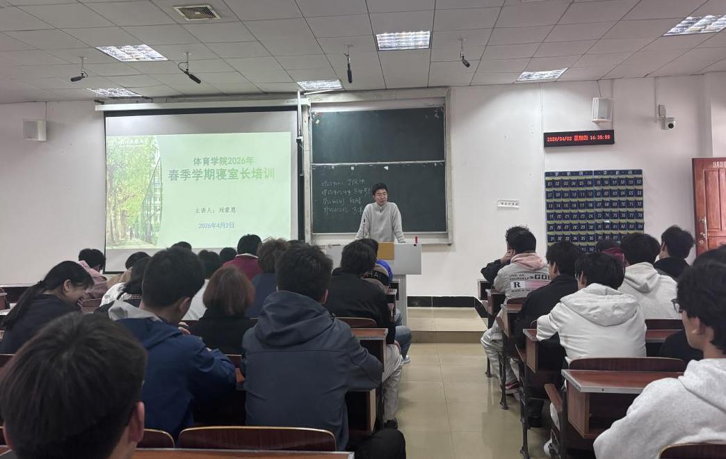 为全面落实《湖北民族大学寝室长选拔及管理办法(试行)》与学生寝室专项治理工作要求,进一步明确寝室长岗位职责,提升寝室长管理能力与安全防范意识,营造干净、整洁、和谐、向上的寝室文化氛围,2026年4月2日,体育学院组织开展年春季学期寝室长培训,学院全体寝室长参加本次培训,培训由刘蒙恩老师主讲。