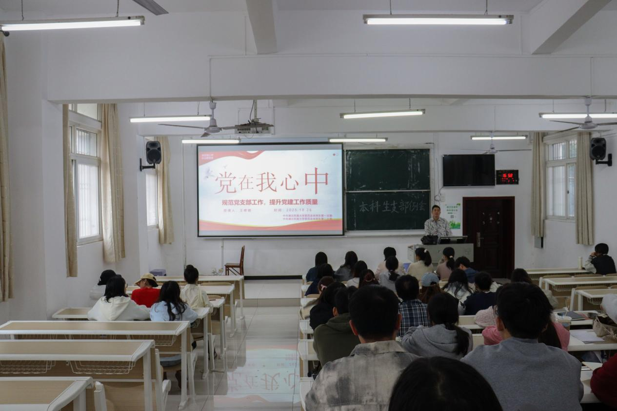 本网讯(记者 廖红娟/文 阎裕如/图)为进一步规范学生党支部工作,提升支部成员业务能力,10月26日下午,我院本科生党支部于文传楼附102教室召开党建工作专题培训会。本次培训围绕"党员发展流程"与"会议记录规范"两大主题展开,由本科生第一党支部书记王修皓担任主讲人,支部全体成员参与学习。培训...