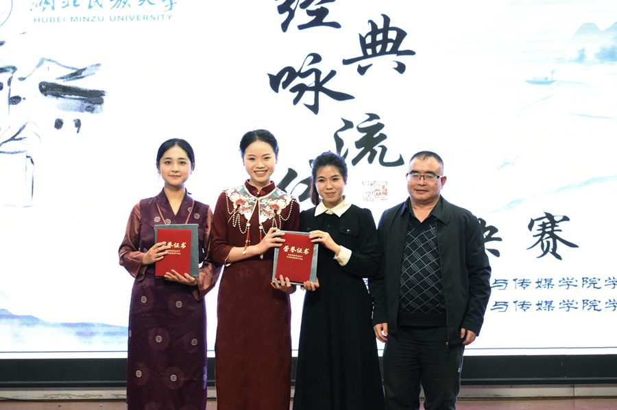 本网讯(记者 向美玲 李娇 曹登霄(见习)/文)11月13日,由湖北民族大学创新创业教育学院主办的“新文科·新医科之生命健康叙事”演讲大赛决赛在文传演播厅举行。我院副教授范生彪,教师梁三姗、辅导员姜春玲,桂园文学社往届社长张芮茜受邀出席并担任评委。颁奖现场(符译丹(见习)/摄) 经过初赛...
