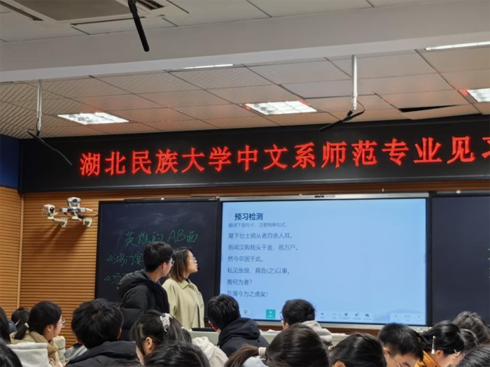 本网讯(通讯员 郑泽红 宋俊宏 梁三姗)为深化师范生对中学语文教学实践的认知,锤炼教育教学核心素养,2026年3月19日下午,文学与传媒学院中文系组织2023级汉语言文学专业近200名学生,分赴恩施市第一中学、恩施市小渡船中学、恩施市舞阳中学三所优质中学,开展了一场沉浸式教育见习活动。本次活动由中文系主任、专业负责人郑泽红带队,副主任宋俊宏及专任教师阳萍、梁三姗、陈梦熊共同参与全程指导,为学子搭建了理论联系实际的优质平台。