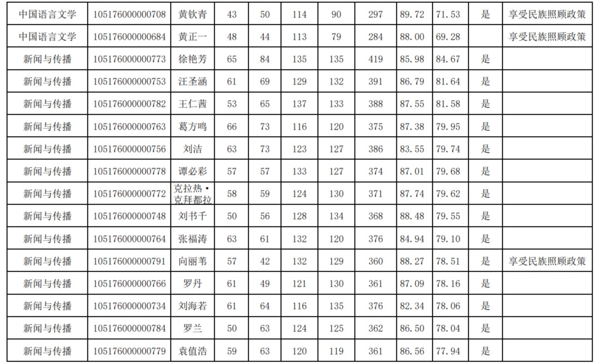 湖北民族大学文学与传媒学院2026年硕士研究生复试成绩及拟录取情况公示(第一志愿)