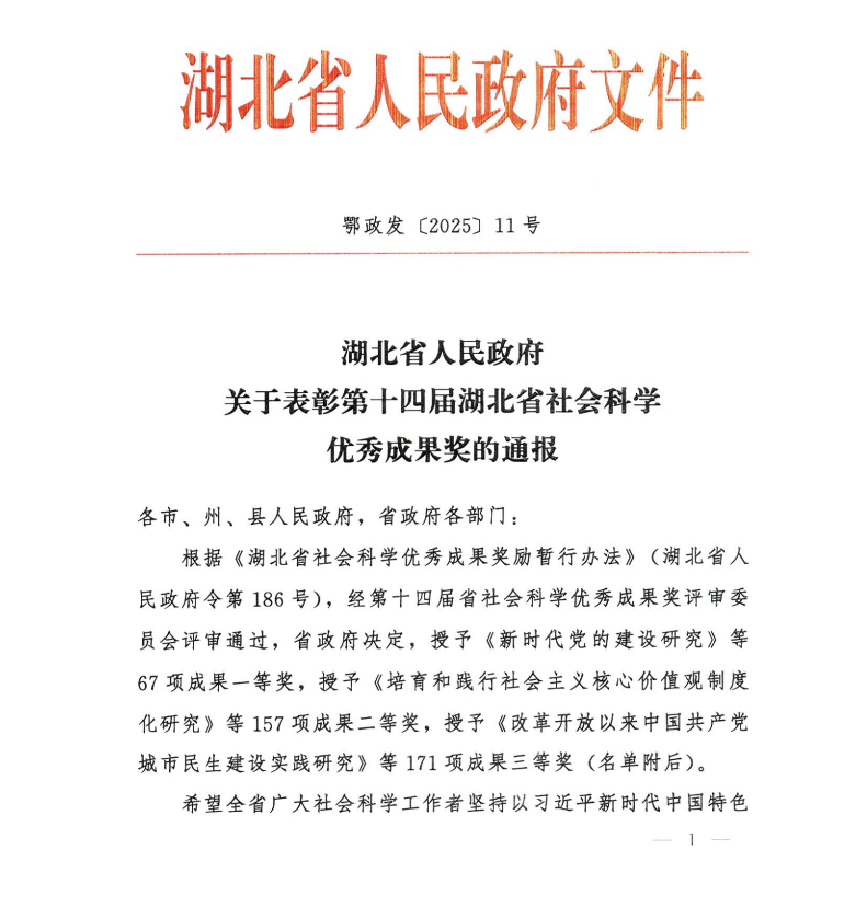 我院教师喜获第十四届湖北省社会科学优秀成果奖