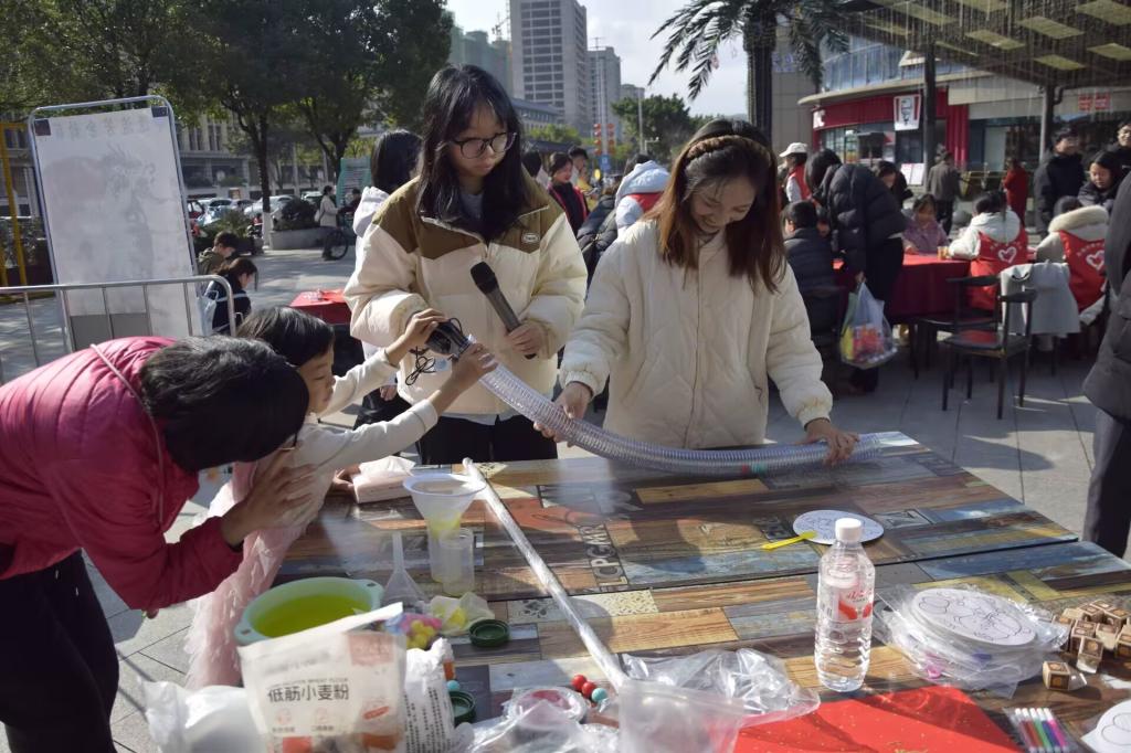 本网讯(记者 宋正悦 蒋文雅(见习) 韩璐(见习)/文)12月14日,共青团湖北民族大学文学与传媒学院委员会社会实践与志愿者工作部携手“管安童行,源梦护航”志愿服务队,在金子坝社区星汇广场举办“传承非遗韵,共织爱国情”特色活动。活动以非遗体验为纽带,融合民族团结教育、爱国情怀培育与管道安全科普,为社区居民与青少年开展了一场兼具文化厚度与实用价值的公益实践活动。